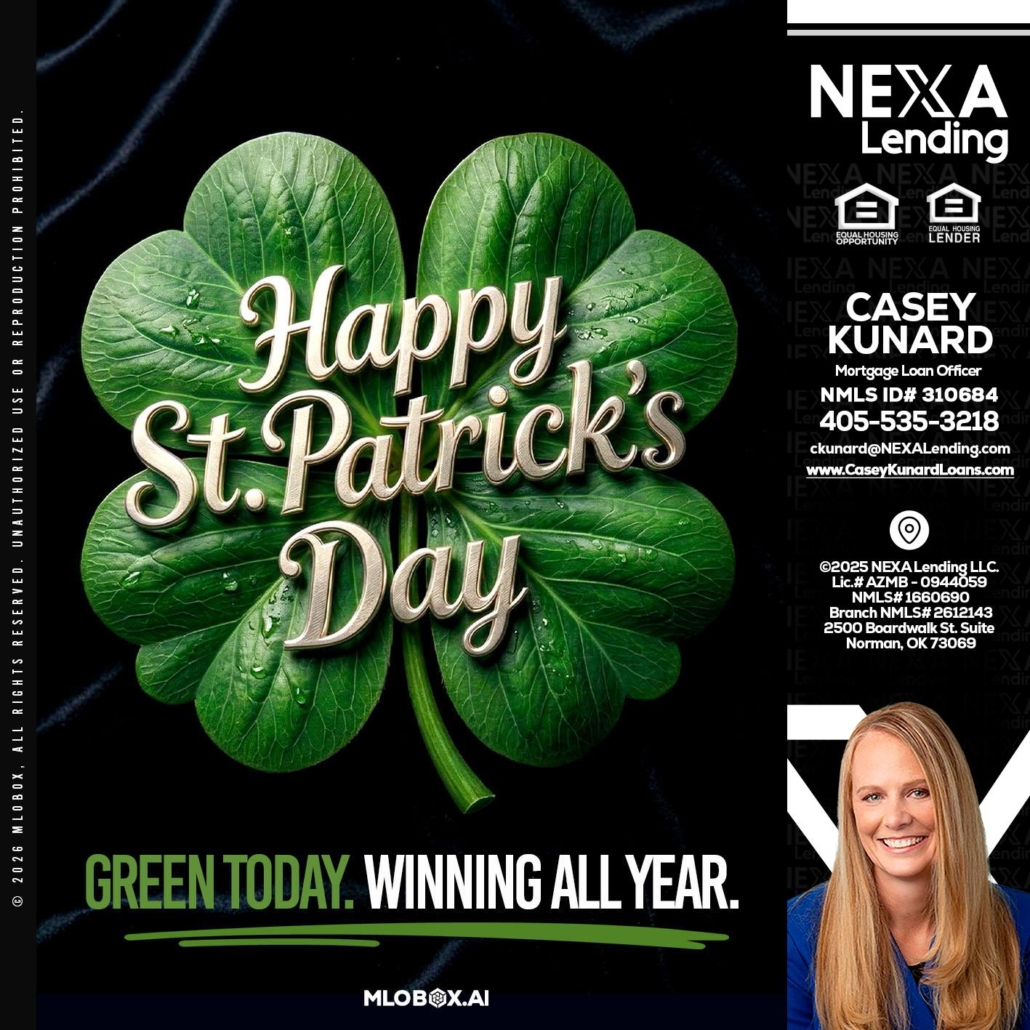 happy st. Patricks day - Casey Kunard -Mortgage Loan OfficerHi, my name is Casey Kunard. I’m a Loan Officer with NEXA Lending LLC., offering personalized mortgage solutions, fast customized quotes, great rates and service with integrity.